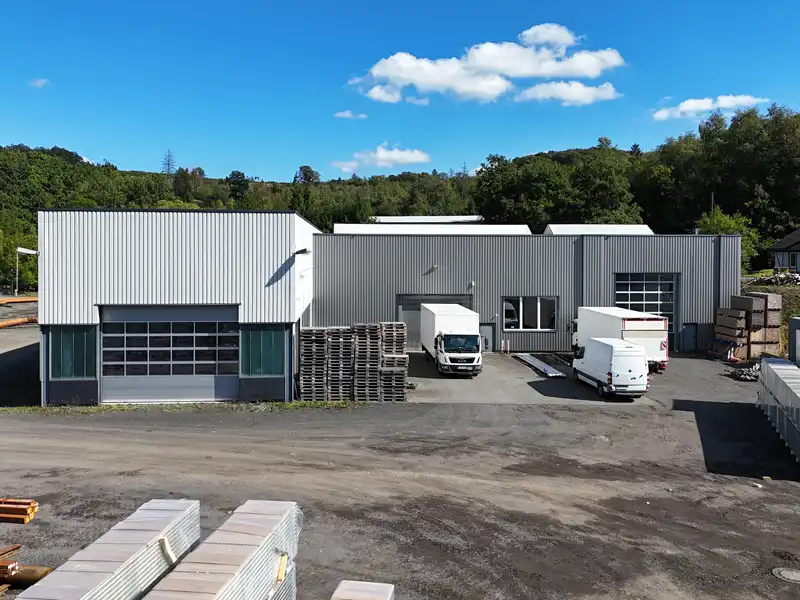 Gewerbeobjekt mit modern ausgestatteten, beheizten und gepflegten Hallen, Büro- und Sozialräume, repräsentatives Erscheinungsbild in ruhiger Lage, direkt am Wald, eingefriedetes Gelände mit Freifläche für Abstellen, Lager und Parken. Die modernen helle Hallen überzeugen mit guter Belichtung, Kranausstattung mit 5t, 8t und 10t, hervorragend anfahrbar mit mehreren LKW-Toren, beheiz über Dunkelstrahler oder Gebläse, Sozialräume im EG, kleines Büro im 1. OG, reichlich Parkplätzen und Hoffläche am Gebäude.
